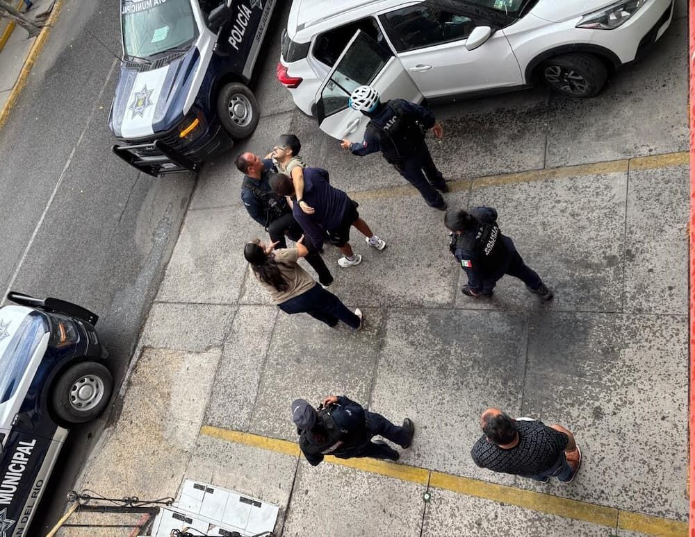 La pareja fue interceptada por un sujeto que vestía pantalón de mezclilla, playera o sudadera blanca de manga larga y gorra, quien intentó despojarlos de sus pertenencias, jaloneando el bolso de la joven, quien de inmediato ingresó al local y fue seguida por el individuo.