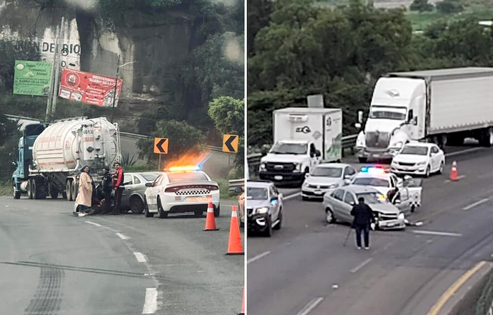 La mañana de este sábado se registró un fuerte accidente sobre la autopista federal México–Querétaro, a la altura del Barrio de la Cruz, en el municipio de San Juan del Río, luego de que un automóvil tipo sedán, color gris, se estrellara contra la barra de contención tras perder el conductor el control de la unidad.