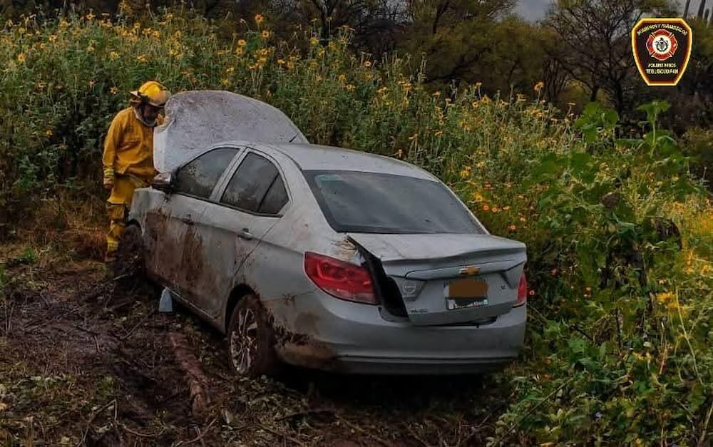 *Un conductor perdió el control de su vehículo en una curva de la carretera El Tejocote; bomberos y policías municipales acudieron al llamado