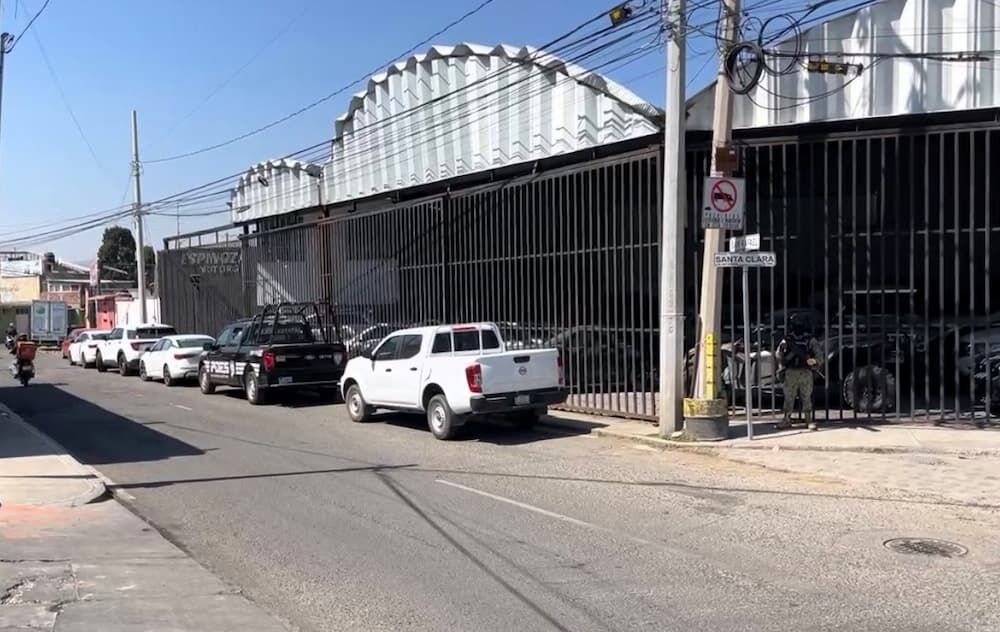 San Juan del Río, Qro. — La mañana de este martes se registró un operativo interinstitucional en la colonia San Rafael, en el municipio de San Juan del Río, específicamente en avenida San Rafael esquina con Santa Clara, donde elementos de la Fiscalía General del Estado de Querétaro realizan un cateo en un predio que opera como concesionaria de vehículos usados, presuntamente relacionado con el delito de robo de automóviles.