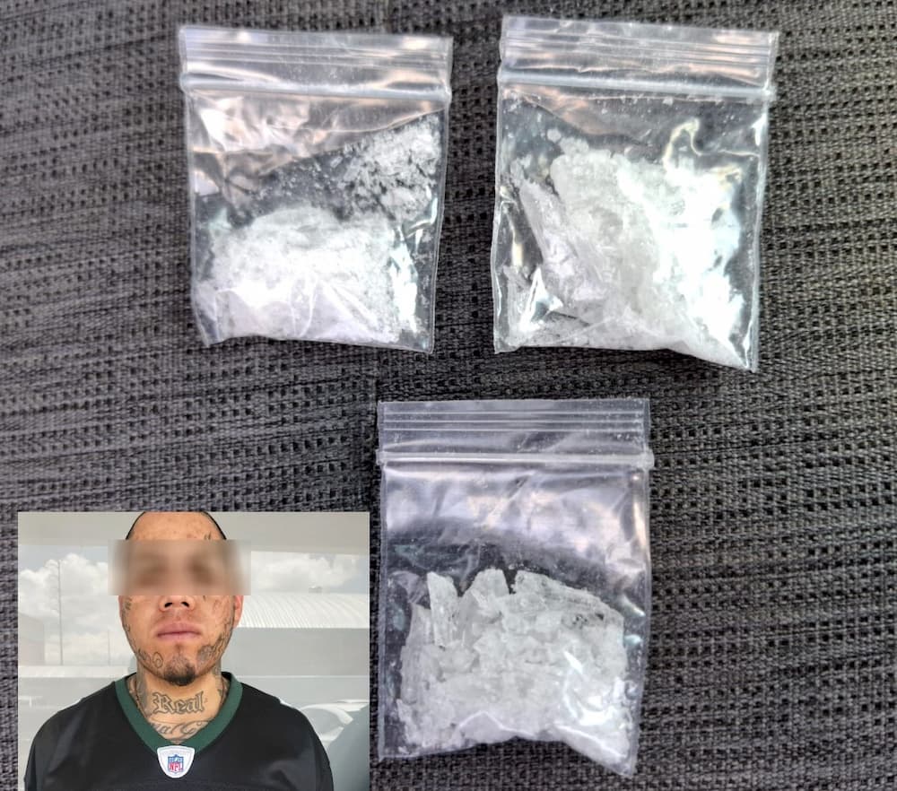 Derivado de una inspección preventiva, le fueron aseguradas tres bolsas de plástico que contenían una sustancia granulada, con características similares a metanfetamina, ocultas en la bolsa delantera de su pantalón. Por este motivo, el sujeto identificado como Adrián “N.” fue detenido de inmediato por delitos contra la salud y puesto a disposición de la Fiscalía General del Estado, con sede en San Juan del Río.