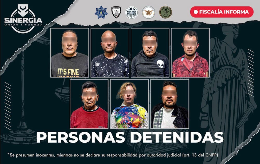 La Fiscalía General del Estado detuvo a 7 personas durante cateos realizados en 4 inmuebles del municipio de Cadereyta de Montes, como probables autores de delitos contra la salud, tras las investigaciones realizadas por personal ministerial, pericial y de la Policía de Investigación del Delito.