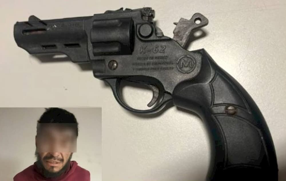Ante la sospecha, los oficiales procedieron a realizar una inspección preventiva, localizando entre sus pertenencias una pistola de diábolos color negro y una llave metálica limada, herramienta comúnmente utilizada para el robo de vehículos.