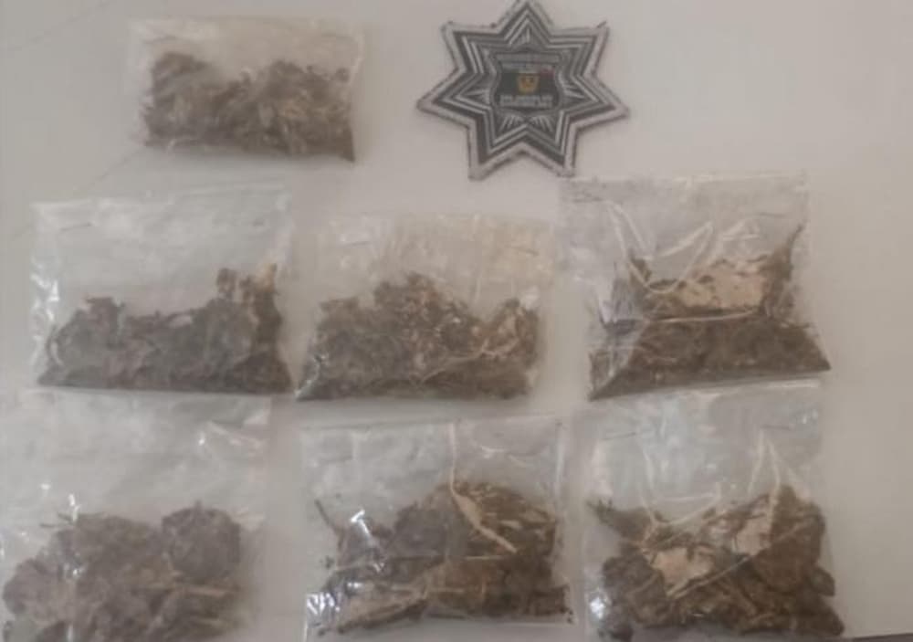 Oficiales de la Secretaría de Seguridad Pública Municipal de San Juan del Río detuvieron a un hombre en la colonia Lomas de Guadalupe tras encontrarle siete bolsas con hierba verde con características similares a la marihuana.