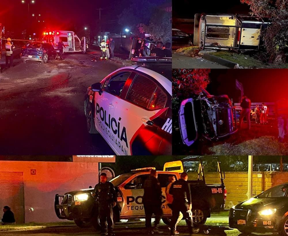 La noche del domingo se registró un fuerte accidente en la intersección de avenida Central y Cuatro Poniente, en la colonia Valle de Oro, al norte del municipio de San Juan del Río, que dejó como saldo dos personas lesionadas. El incidente involucró a una patrulla del municipio de Tequisquiapan, la cual terminó volcada tras chocar contra un vehículo particular.
