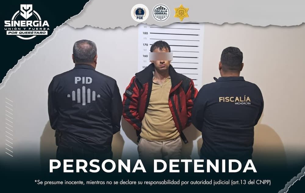 En el marco de la estrategia Sinergia por Querétaro, la Fiscalía General del Estado de Querétaro, a través de la Policía de Investigación del Delito (PID), en coordinación con la Fiscalía General del Estado de Michoacán y la Secretaría de Seguridad Pública Municipal de Querétaro, cumplimentó una orden de aprehensión en contra de “El Pista”, por su probable autoría en el delito de homicidio calificado, cometido en Michoacán.