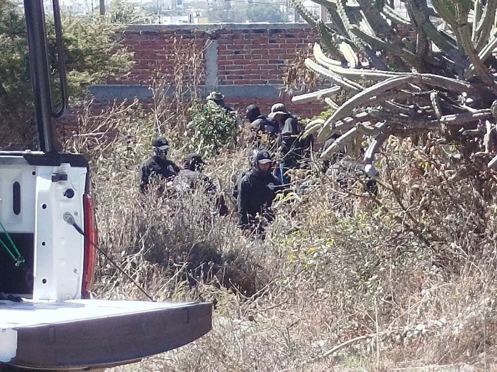 Elementos de la Policía de Investigación del Delito acudieron al sitio con el apoyo de corporaciones municipales de San Juan del Río, Corregidora y El Marqués, así como del grupo K9 de la Policía de Corregidora, cuyos ejemplares caninos marcaron positivo en el terreno, confirmando indicios relevantes para la investigación.