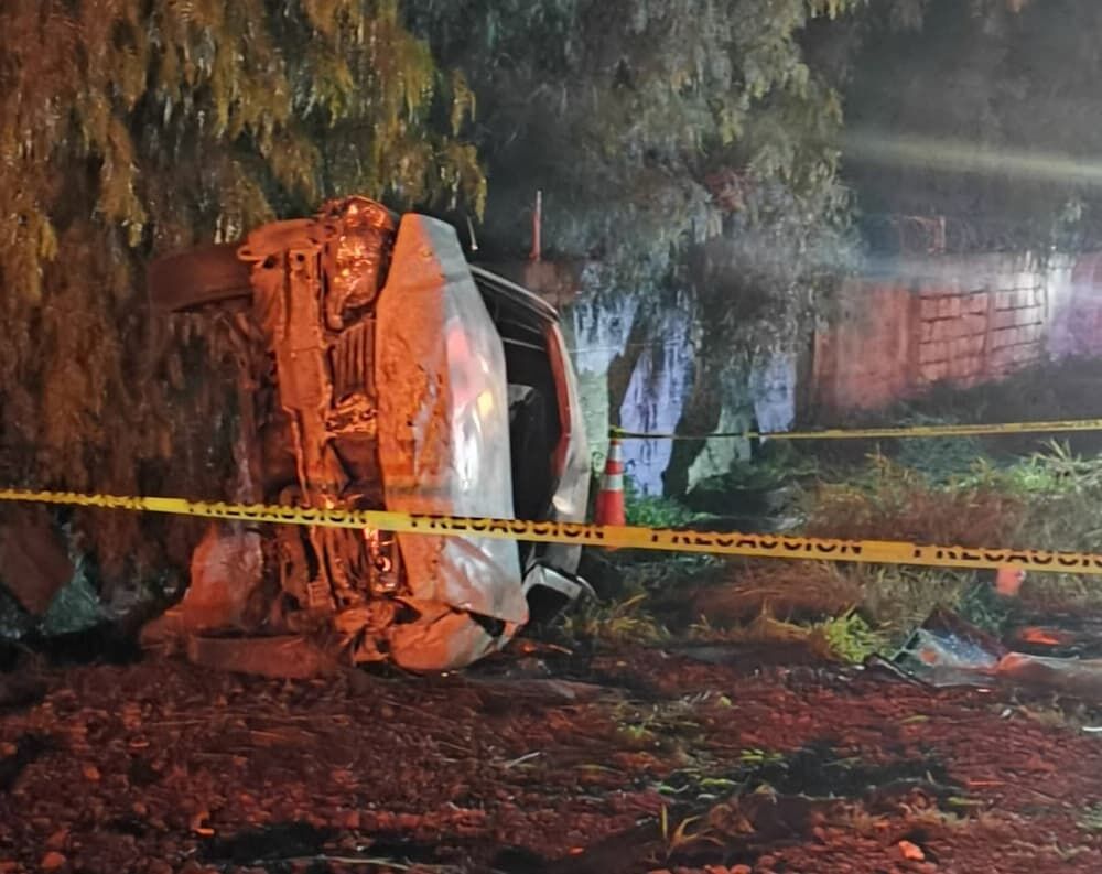 De acuerdo con el informe policial, el percance ocurrió cuando una camioneta con placas para el estado de Hidalgo, en la que viajaban las víctimas, se impactó violentamente contra la barra de contención y terminó volcada fuera de la cinta asfáltica.