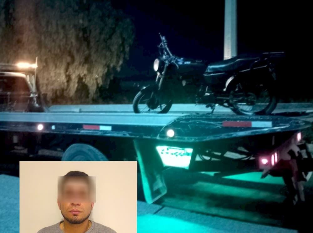 Durante un recorrido de seguridad y vigilancia, elementos de la Secretaría de Seguridad Pública Municipal (SSPM-SJR), detuvieron a Sergio “N” por el delito de robo equiparado, por no contar con ningún documento que acredite la motocicleta en la que se transportaba.