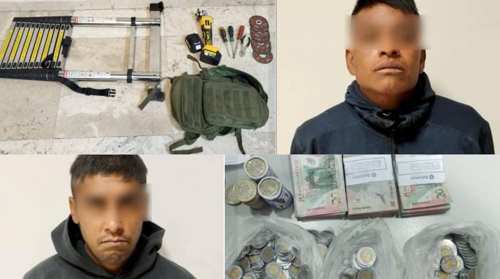 Asimismo, las autoridades informaron que los sujetos habrían sustraído dinero en efectivo de una caja registradora. En la revisión preventiva también se les aseguró una mochila y diversas herramientas presuntamente utilizadas para cometer el ilícito.