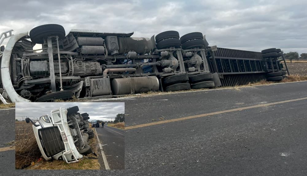La circulación en la carretera estatal La Estancia–La Llave se vio afectada la mañana de este jueves, luego de que un tráiler con plataforma volcara a la altura del kilómetro 5.5. El accidente ocurrió cuando el operador tomó una curva y perdió el control de la unidad, lo que provocó que el peso del cargamento lo venciera y terminara fuera de la cinta asfáltica.