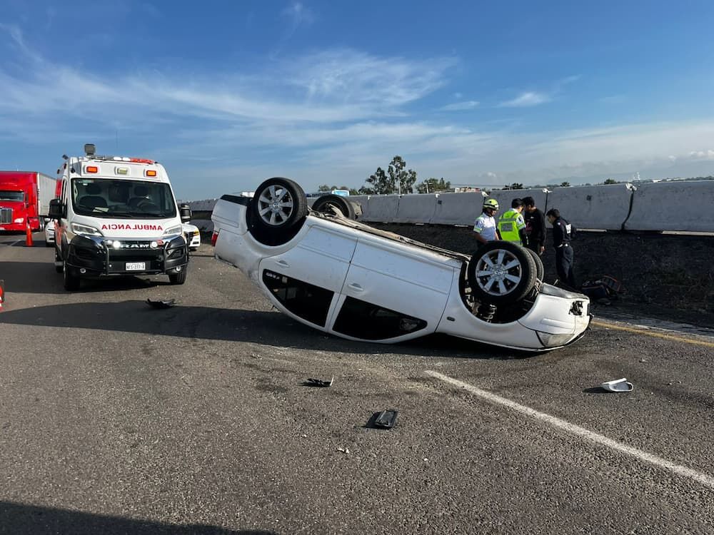 *Accidente ocurrido a la altura del kilómetro 163, en San Juan del Río; el vehículo terminó volcado con las llantas hacia arriba