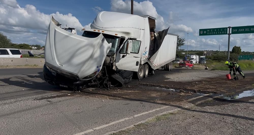 Un tráiler con plataforma perdió el control al quedarse sin frenos en el acceso al municipio de San Juan del Río, lo que provocó que quedara atravesado en sentido contrario, generando afectaciones viales, pero sin dejar personas lesionadas.