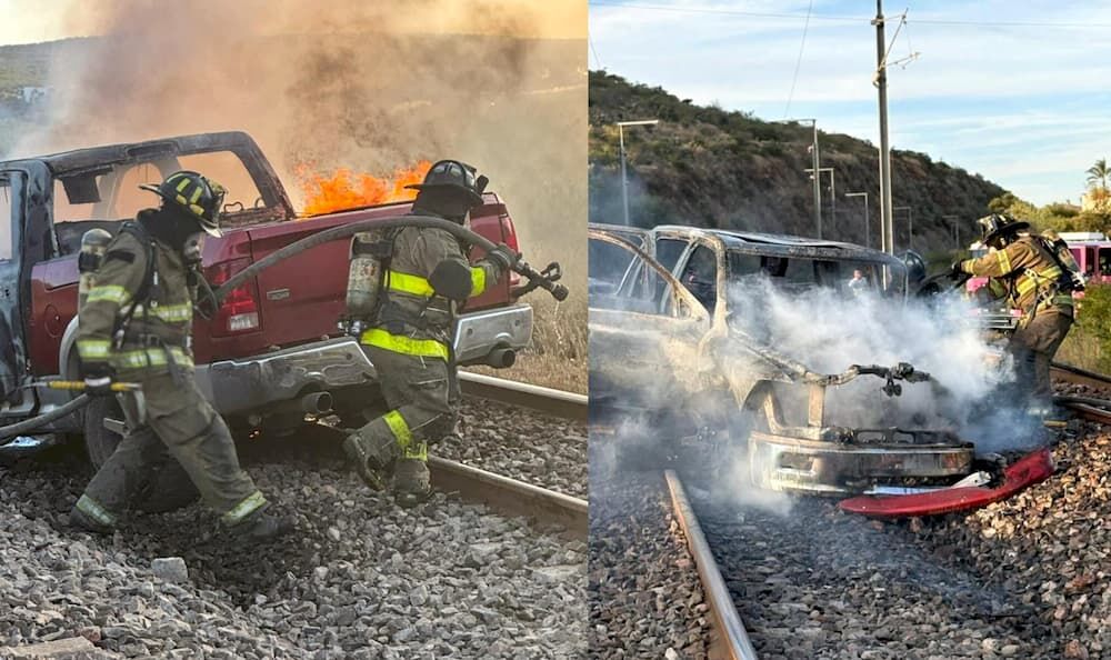 *Intento de rescate en las vías provoca que la camioneta quede atrapada y se incendie; no se reportan lesionados