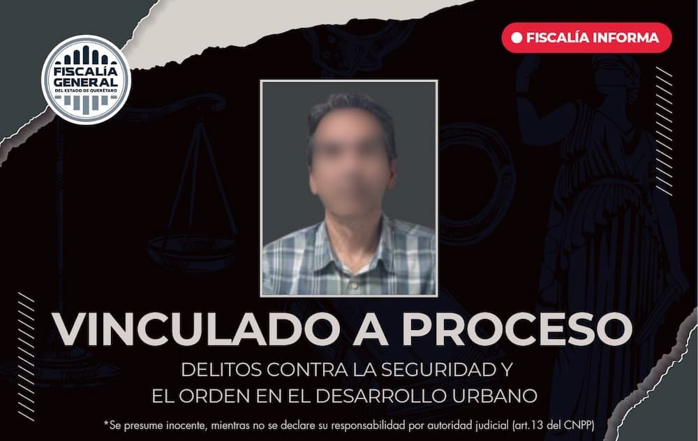 La Fiscalía de Querétaro informa que fue vinculado a proceso un hombre por su probable intervención en Delitos contra la Seguridad y el Orden en el Desarrollo Urbano, derivado de hechos ocurridos entre los años 2017 y 2019 en agravio de seis personas, quienes en conjunto registraron un detrimento económico.