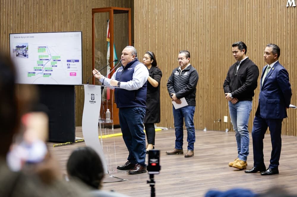 El presidente municipal de Querétaro, Felipe Macías, junto con el secretario de Gobierno, Eric Gudiño Torres; el director de la Agencia de Movilidad del Estado de Querétaro, Gerardo Cuanalo Santos; y el secretario de Movilidad, Pedro Ángeles Luján, dieron a conocer el operativo que se implementará con motivo del inicio de la obra federal del Tren México–Querétaro, con el objetivo de reducir al máximo las afectaciones a las y los habitantes de la capital.