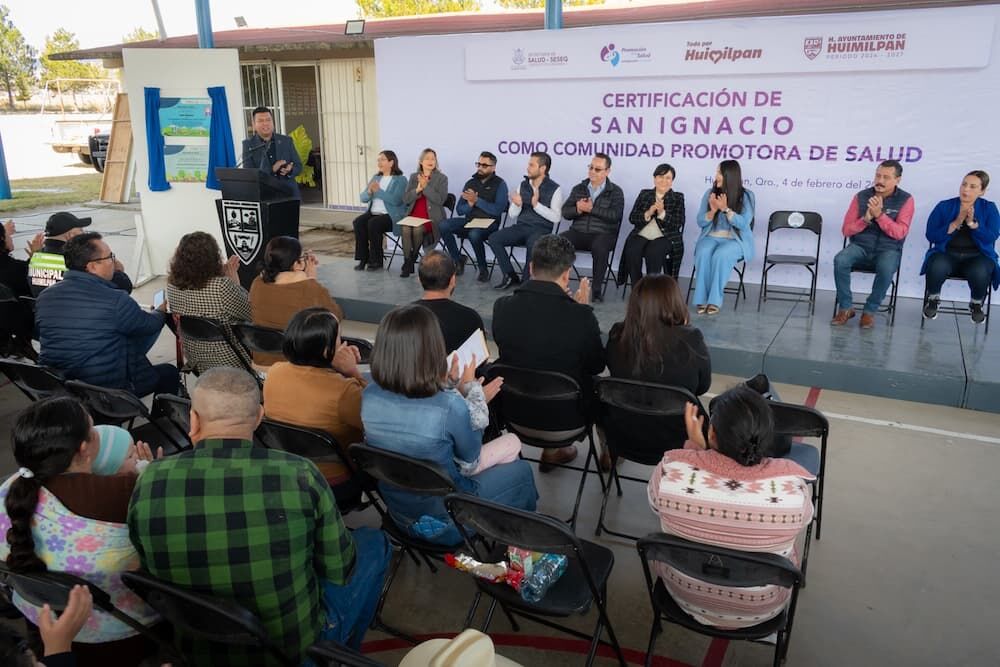 La localidad de San Ignacio, en el municipio de Huimilpan, recibió la Certificación como Comunidad Promotora de la Salud, como resultado del trabajo organizado y la participación activa de la población para fortalecer entornos saludables y mejorar su calidad de vida. Asimismo, el área de juegos infantiles San Ignacio fue reconocida como Espacio de Recreación Saludable, mientras que el Preescolar Adolfo Ferreire, la Primaria Margarita Maza de Juárez y la Telesecundaria “Santos Degollado” obtuvieron la Certificación como Escuelas Promotoras de la Salud.