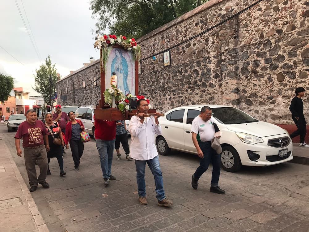 Este lunes inició la novena de la Virgen de Guadalupe en el municipio de Corregidora, cerca de diez miembros de la religión católica caminaron desde la parroquia de San Francisco Galileo hasta una casa en Fray Sebastián Gallegos.