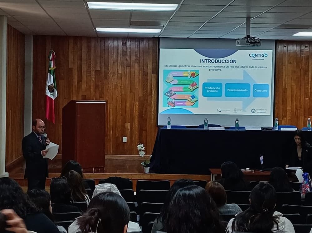 El director de Protección Contra Riesgos Sanitarios (PCRS) de la Secretaría de Salud (SESA) del Estado de Querétaro, José Samuel García Sánchez, impartió la ponencia titulada “Salud Pública y Alimentos: Acciones Estratégicas de la DPRS, en el Foro de Inocuidad y Seguridad Alimentaria organizado por la Universidad Autónoma de Querétaro (UAQ).