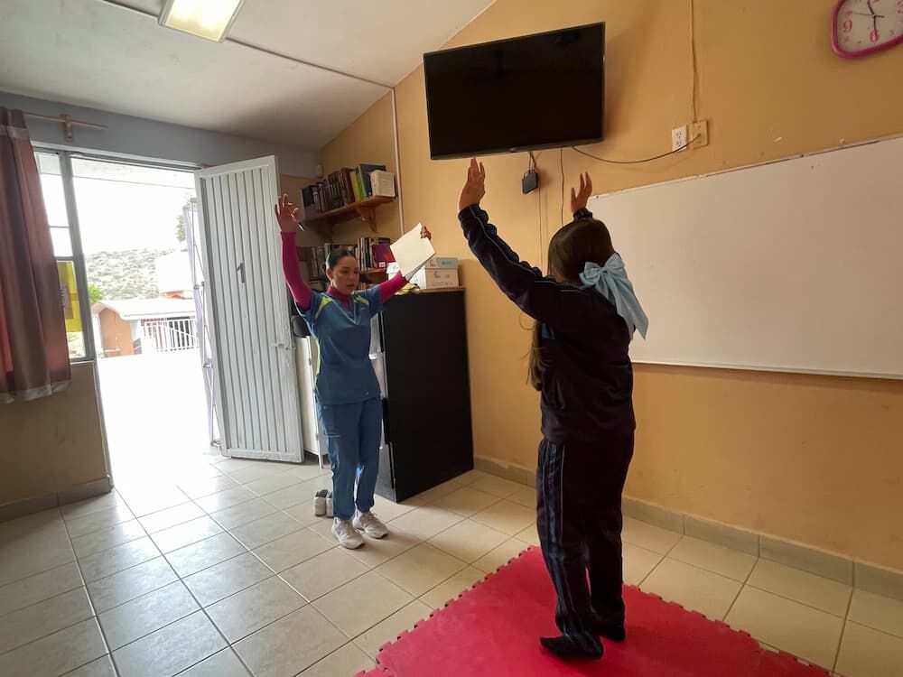 Estudiantes de la Licenciatura en Terapia Física de la Universidad Politécnica de Santa Rosa (UP Santa Rosa), realizaron valoraciones posturales a alumnos de la Telesecundaria “México”, de la comunidad La Monja, en Santa Rosa Jáuregui, con el objetivo de evaluar el estado de su alineación corporal para detectar de manera temprana posibles alteraciones como escoliosis, hiperlordosis o desequilibrios musculares; factores que pueden afectar su desarrollo físico y rendimiento escolar.