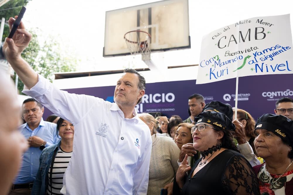 Reunidos en las canchas de basquetbol de la Unidad Deportiva Josefa Ortiz de Domínguez en la capital queretana, el mandatario estatal convivió con los participantes, quienes le compartieron su testimonio sobre las bondades del programa del que son beneficiarios y cómo ha cambiado e impactado positivamente en sus vidas, entre los que destacan Canasta Alimentaria, Clubes de Adulto Mayor, Contigo y tu Bebé, Transporte Escolar y Cuartos Adicionales.