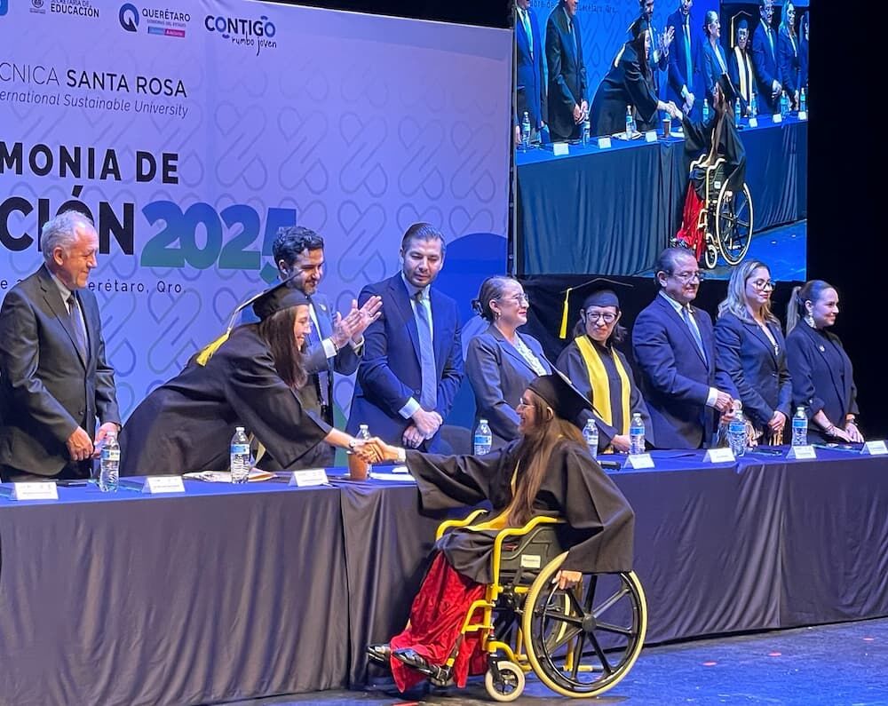 El rector de la Universidad Politécnica de Santa Rosa Jáuregui (UPSRJ), Christian Reyes Méndez, entregó 378 constancias a egresados de nivel licenciatura y de posgrado, por el término de sus estudios, en donde se destacó a cinco egresadas y egresados del Programa de Inclusión con discapacidad física y auditiva.