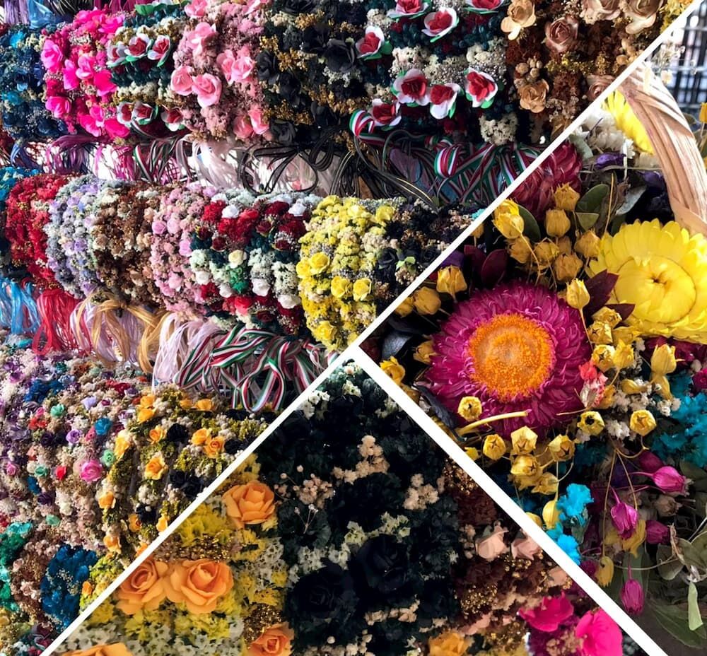 En San Miguel de Allende, municipio perteneciente al estado de Guanajuato, se venden diademas de flores con naturaleza muerta y artificial, este adorno es típico de la región.