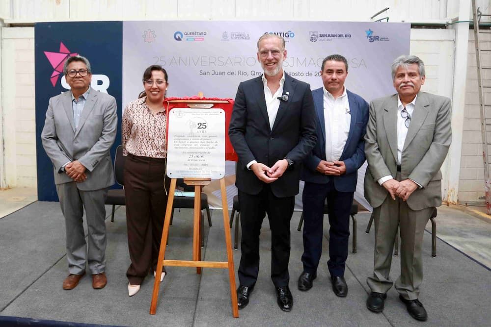 El titular de la Secretaría de Desarrollo Sustentable (SEDESU), Marco Antonio Del Prete Tercero, encabezó la celebración de los 25 años de la empresa SJMAQUINSA, donde destacó que la compañía ha abierto nuevos nichos industriales para San Juan del Río.