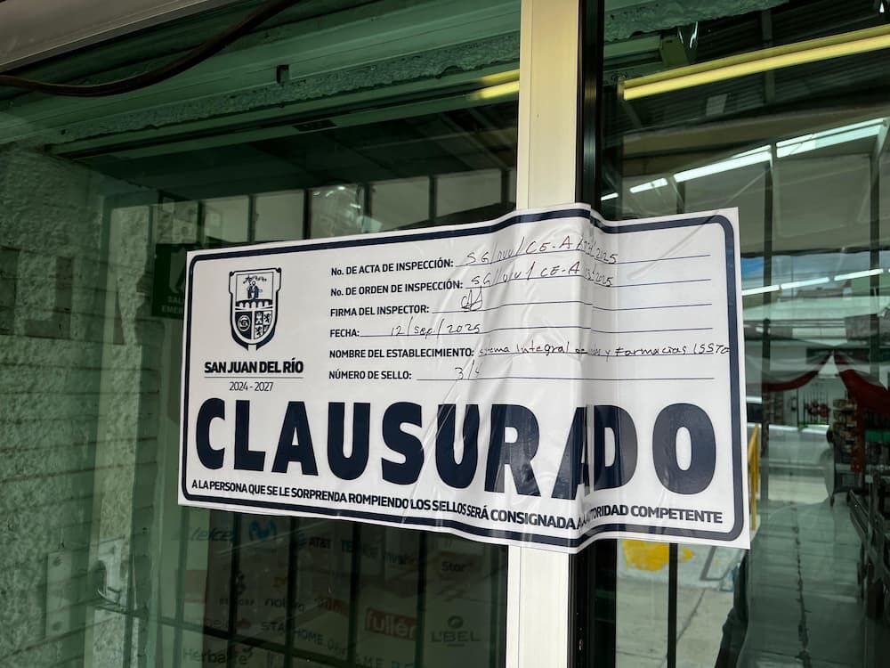 En lo que va del mes de septiembre se han clausurado seis establecimientos por incumplir con la normatividad municipal: cuatro de ellos relacionados con la venta irregular de bebidas alcohólicas y dos más de giros comerciales diversos, informó el director de Gobierno del municipio de San Juan del Río, Rodrigo Ruiz Díaz, quien señaló que estas acciones forman parte de los operativos permanentes que se realizan para combatir la informalidad y garantizar que los negocios operen bajo condiciones de seguridad y legalidad.
