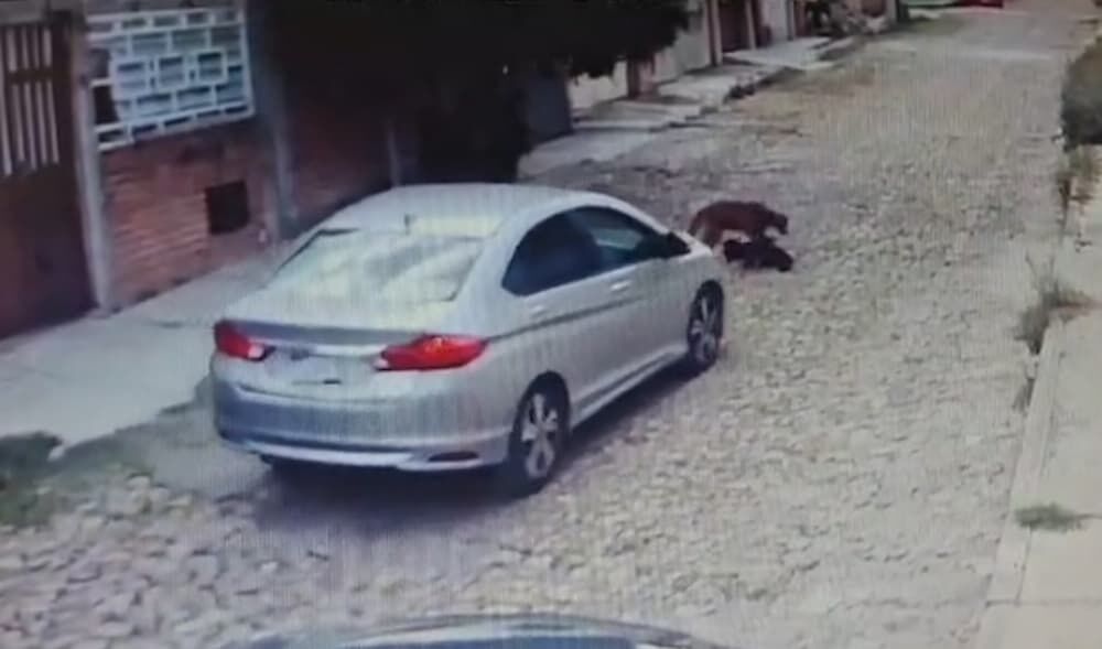 Durante el video se puede observar cómo tres cachorros estaban a mitad de calle acompañados de su madre, la cual sí pudo esquivar al automóvil, quedando lesionados solo los cachorros.
