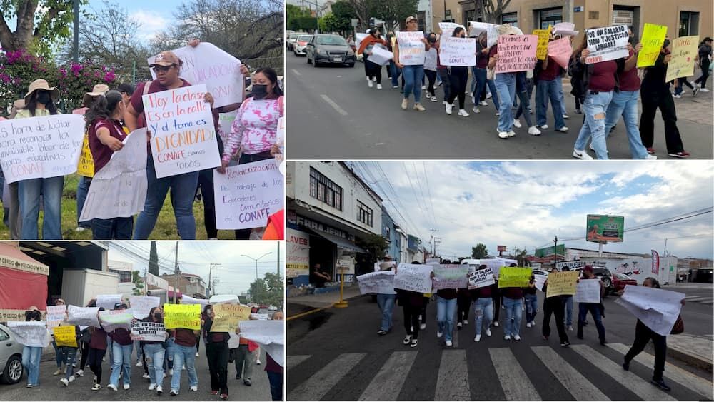 La tarde del viernes, cerca de 30 educadoras comunitarias se manifestaron mediante una marcha sobre la avenida Benito Juárez, en el municipio de San Juan del Río, para exigir mejores condiciones en el apoyo económico que reciben, el cual consideran insuficiente e inequitativo frente a las funciones que desempeñan.
