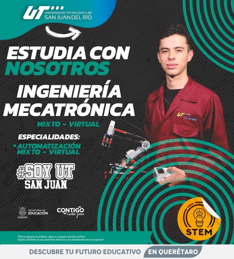 Con la implementación de su nuevo modelo educativo, la Universidad Tecnológica de San Juan del Río aperturó la Ingeniería Mecatrónica con un plan de estudios mixto virtual dirigido a profesionistas y empleados del sector productivo que desee profesionalizar sus conocimientos en esta área. El registro para el examen de admisión ya se encuetra abierto y estará disponible hasta el 14 de marzo a través de la página www.utsjr.edu.mx.