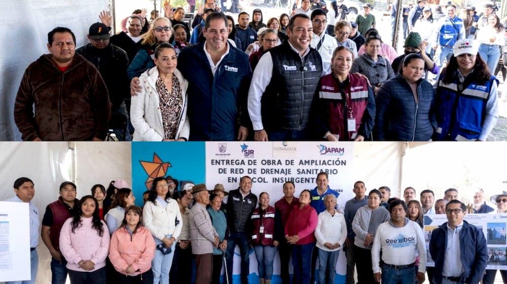 La Junta de Agua Potable y Alcantarillado Municipal (JAPAM) entregó este miércoles tres importantes obras de ampliación y construcción de redes de drenaje sanitario en las colonias Rocío 1, Rocío 3 e Insurgentes, con una inversión superior a 16 millones de pesos y beneficiando a más de mil 900 sanjuanenses.