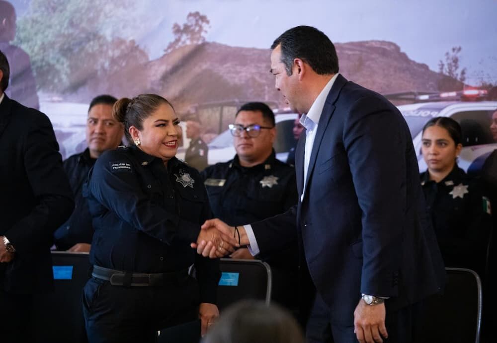 “Nos ha ido bien con nuestra policía, queremos que sigan así, que sigan adelante con bien y salud, y que sigan desarrollando siempre esa vocación de la manera más buena y positiva para nuestro país. Hoy ustedes son ejemplo en este país de buena policía. Nuestro reconocimiento, no solamente del presidente municipal, yo soy su compañero, pero quiero externarles de verdad que recibo buenos comentarios”, dijo Cabrera Valencia.
