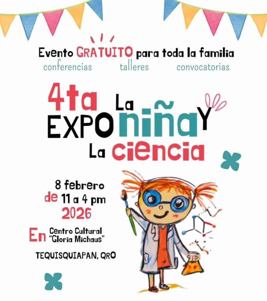 Tequisquiapan, Querétaro.- En el marco del Día Internacional de la Mujer y la Niña en la Ciencia, la organización Movimiento Semilla de Tequisquiapan llevará a cabo la cuarta edición de la Expo La Niña y la Ciencia 2026, el próximo 8 de febrero en el Centro Cultural Gloria Michaus, un evento comunitario y totalmente gratuito que tiene como objetivo acercar la ciencia a la comunidad y fomentar la participación de niñas y adolescentes en áreas de ciencia, tecnología, ingeniería y matemáticas (STEM).